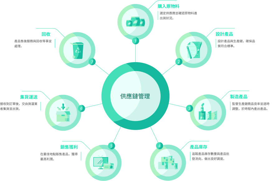 「供應鏈管理系統」為協助企業在多變與競爭之環境裡取得競爭優勢,透過建構精實管理之供應鏈機制與協同合作體系,互通彼此資訊,讓供需掌握狀況更加即時。